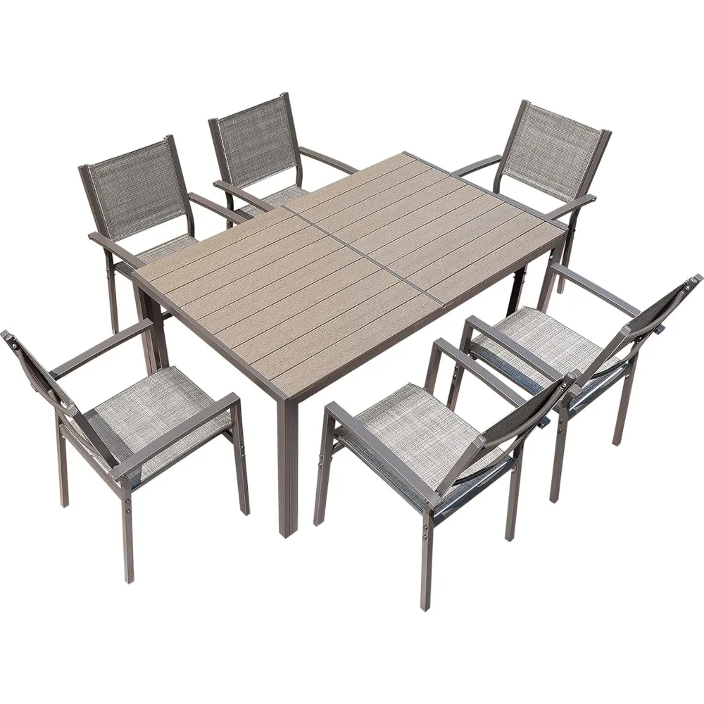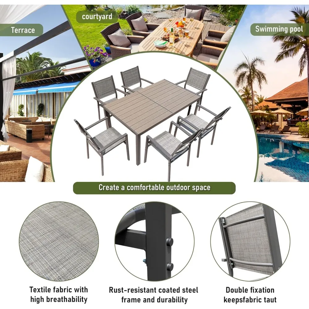 7 Piece Patio Dining Set Outdoor Furniture Set with Weather Resistant Table and 6 Stackable Textilene Chairs for Garden