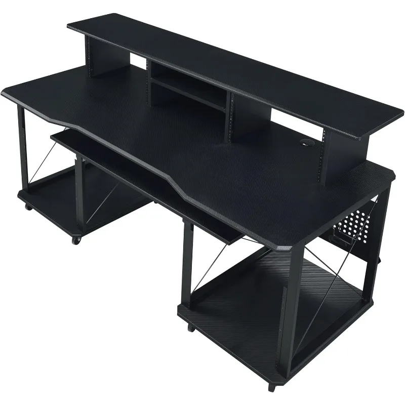 Furniture Metal and Wooden Music Desk with Wheels, Black