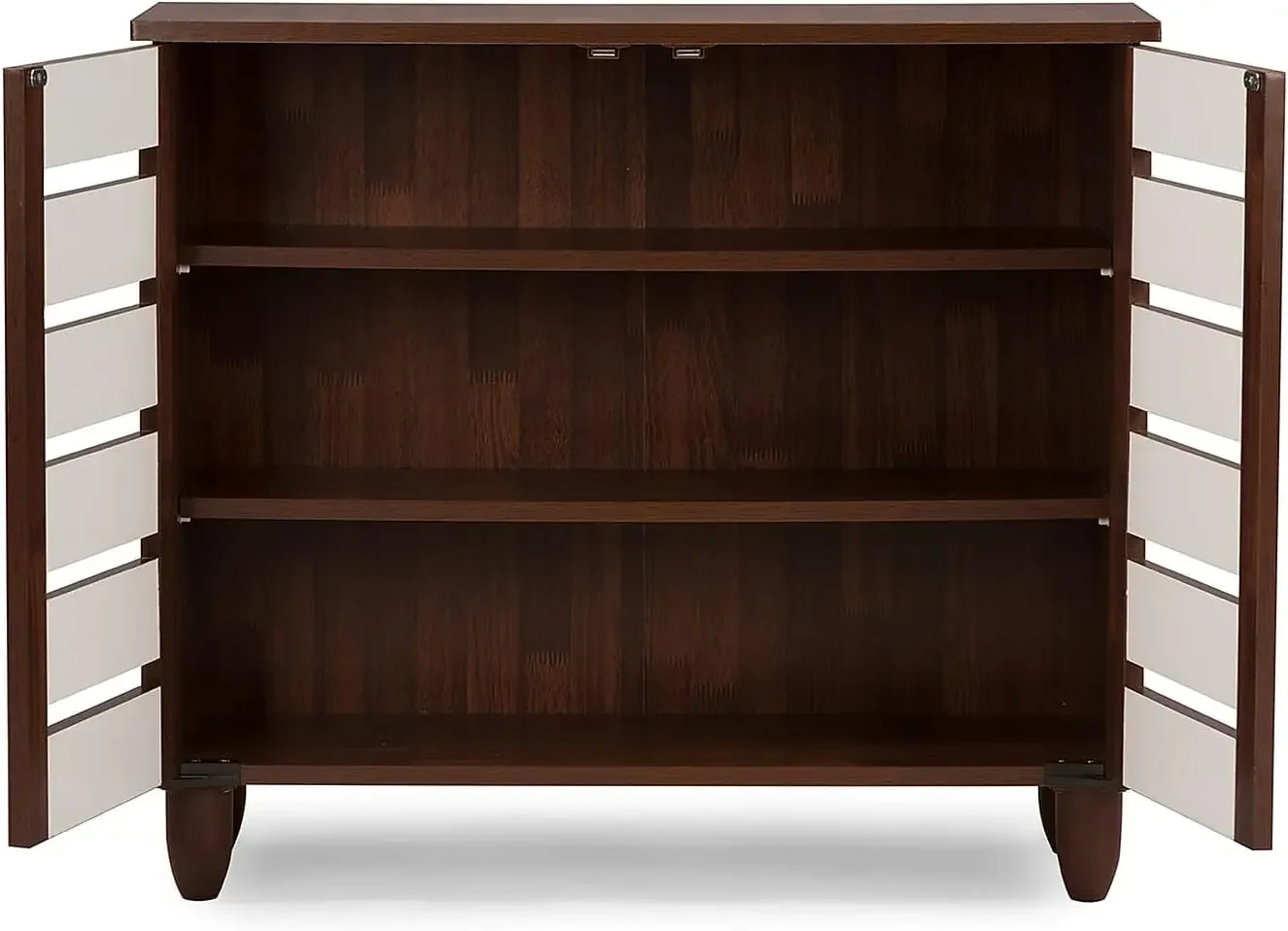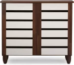 - 2-Door: 3 shelves space with 2 fixed dividers. Each shelf space measures 28″W x 11″D x 7″ behind each door; Can hold up to 9 pairs of shoes. Baxton Studio offers a 30-Day parts replacement on all items. If you experience any issue with your product, please contact us ordersupport@wholesale-interiors.com.