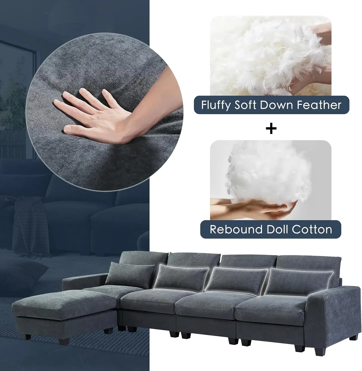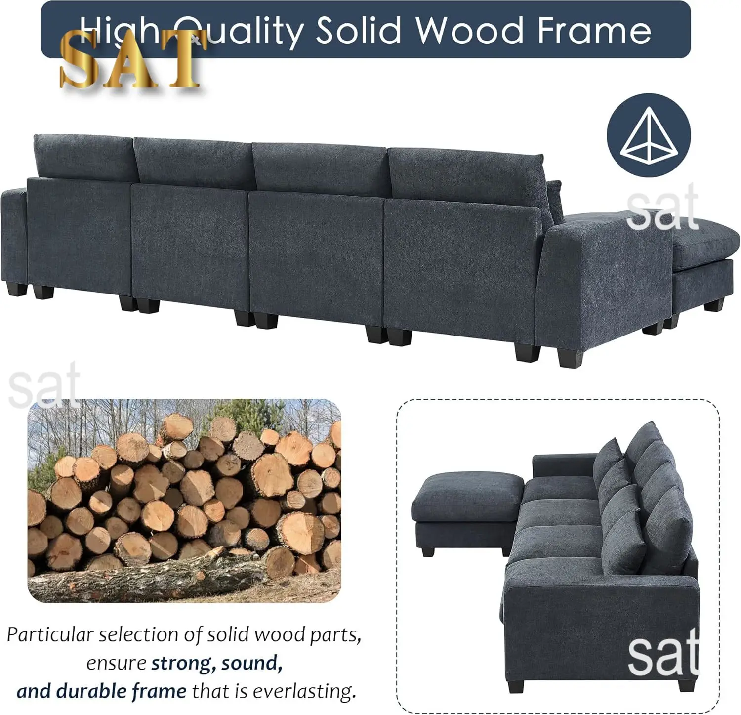 Modulaire Grote Sectionele Bank Met Ottomaanse, 6-zits Gestoffeerde Combinatie Hoekbank Voor Ruimtemeubilair Sets