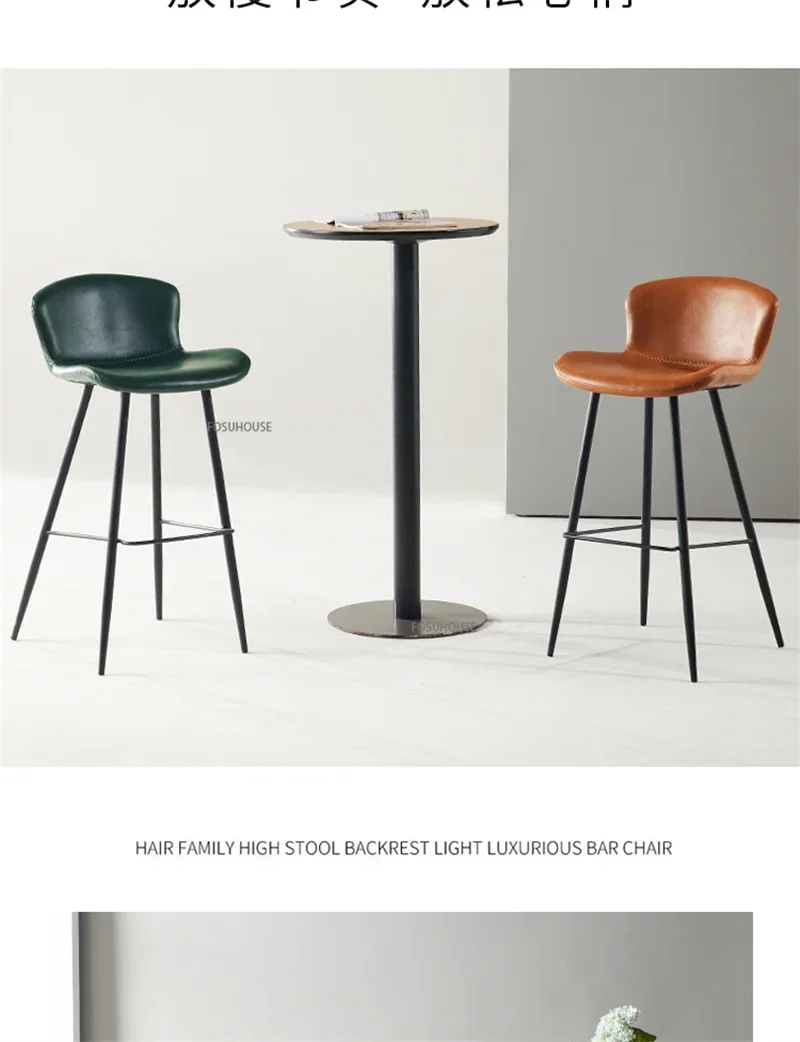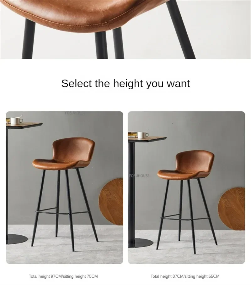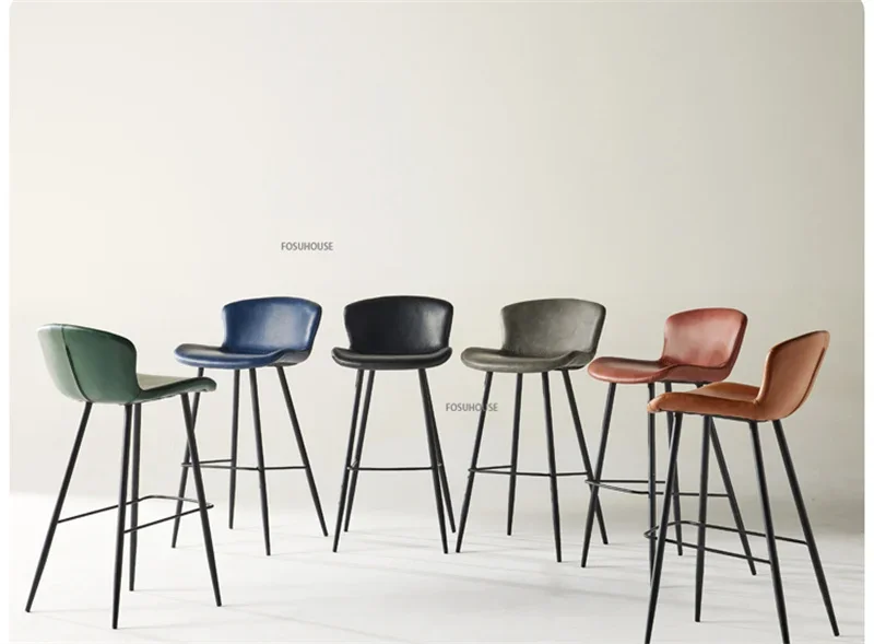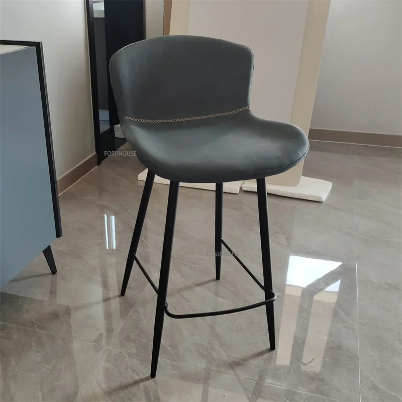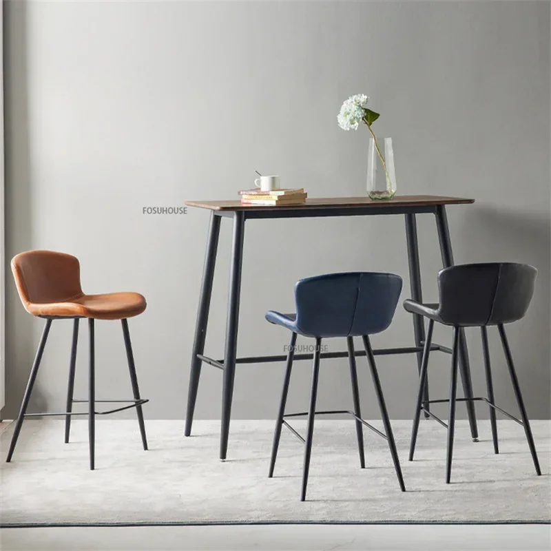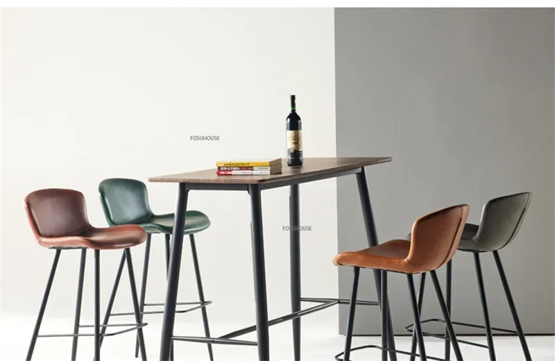Nordic Zadel Lederen Barstoel voor Barmeubilair Licht Luxe Huis Keuken Eetkamer Barkruk Eenvoudige Ijzeren Vrije tijd Hoge Kruk